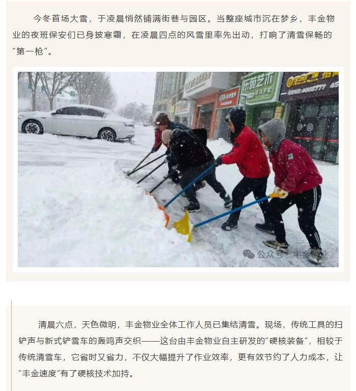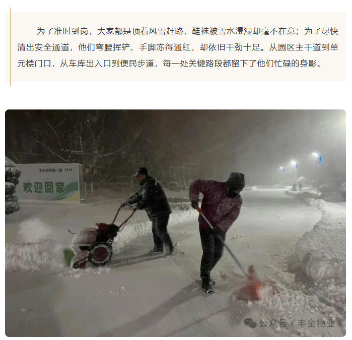 丰金速度!雪落即动,为业主铺就暖冬坦途