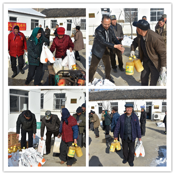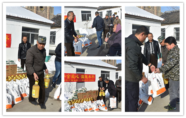 1月30日上午,在新春佳节来临之际,丰金爱心在线走进姜格庄街道沙家疃村,对该村27户低保、残疾家庭进行走访慰问,为每户家庭带去大米、面粉、花生油,并将真挚的祝福和深情的暖意带进低保、残疾人家中。