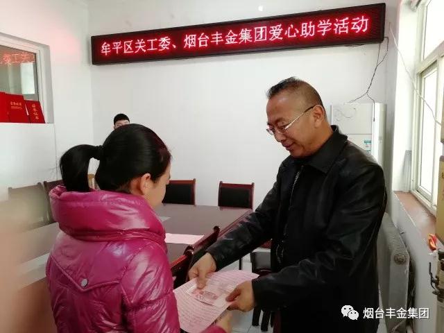 2月13日,丰金爱心在线与牟平区关心下一代委员会联合开展爱心助学活动,为牟平区8名品学兼优贫困家庭的学子们发放8000元助学善款。