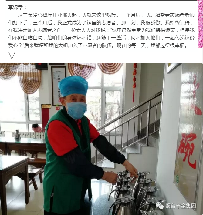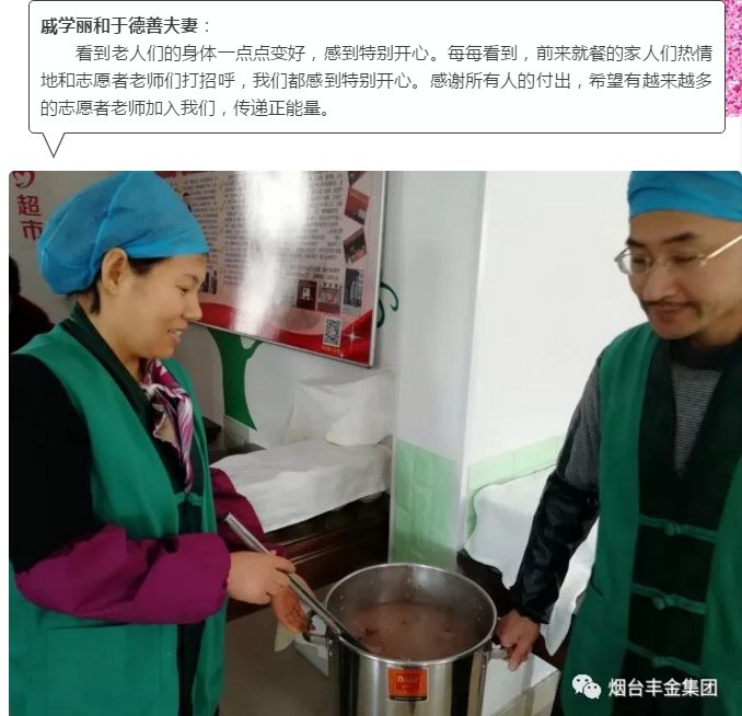 673个日日夜夜,离不开你们的坚守,40万人的免费早午餐,是你们用爱心做成。环卫工人、孤寡老人、残疾人……因为有你们用爱付出,让他们感受到如家般的温暖,感谢爱心奉献,感恩一路有你们。——丰金爱心在线