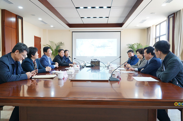领导们在丰金集团会议室进行座谈交流