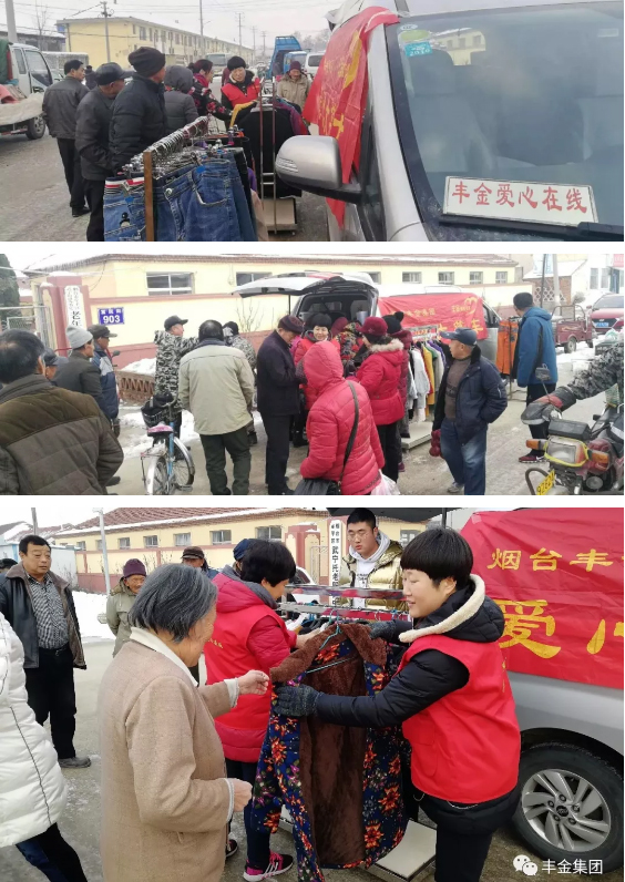 “丰金爱心大篷车”是烟台丰金集团“丰金爱心在线”、“丰金爱心餐厅”、“丰金爱心超市”之后,推出的又一项公益爱心服务活动,是专门面向年老、体弱、残疾、行动不便的困难群众提供流动服务的,主要将“丰金爱心超市”里平时接收的爱心物品主动送往乡镇,方便平时进城不便的群众。截至目前,丰金爱心超市共计接收捐赠衣物及日用品20多万件,已被困难群众领取的物品达18万多件。