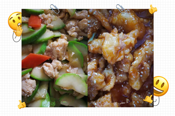 晚餐:米饭 糖醋里脊 红枣蒸南瓜 火爆大头菜 丝瓜汤 水果