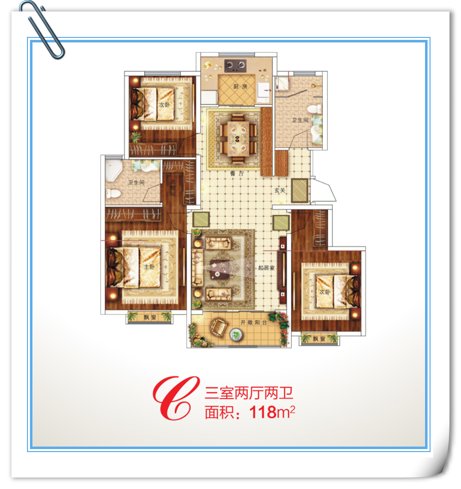 卧室精致飘窗保证阳光充足,方正客厅更加宽敞舒适,