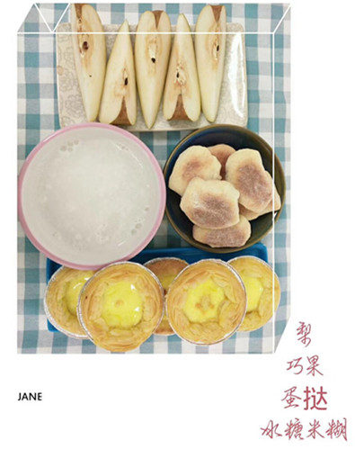 间餐:梨 巧果 蛋挞 冰糖米糊