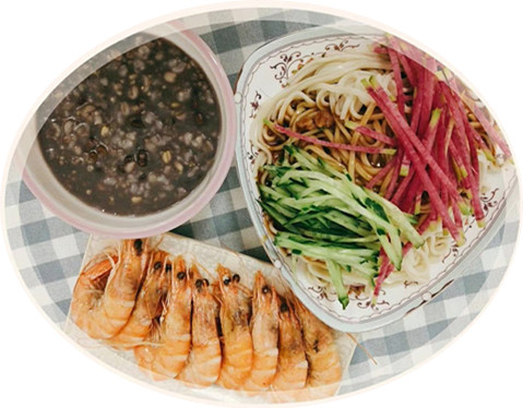 午餐:炸酱面 杂粮粥 葱油虾