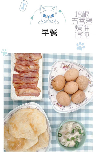早餐:馄饨 五香蛋 培根 烤饼