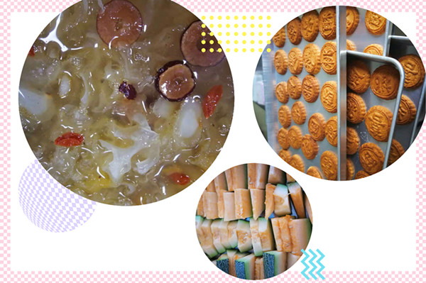 午餐:葱油大饼 米饭 糖醋鳕鱼 红烧茄子 蚝油杏鲍菇 西红柿蛋花汤 水果