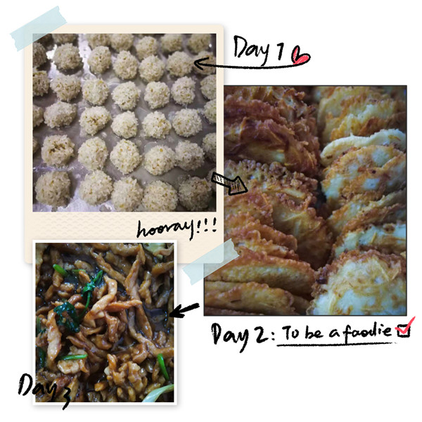 晚餐:糖三角 萝卜丝炖虾 醋溜白菜 炒土豆丝 紫菜汤 水果