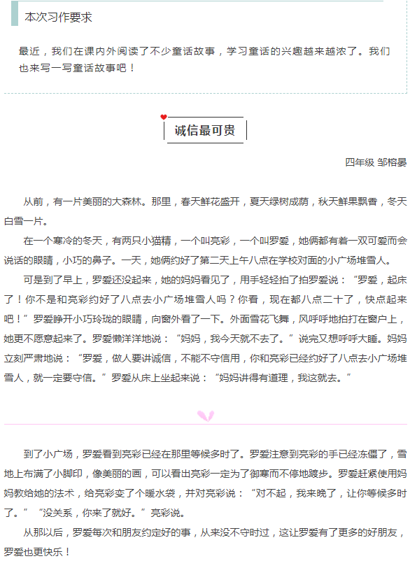 烟台市牟平区丰金国学学校学生园地——四年级学生优秀习作风采