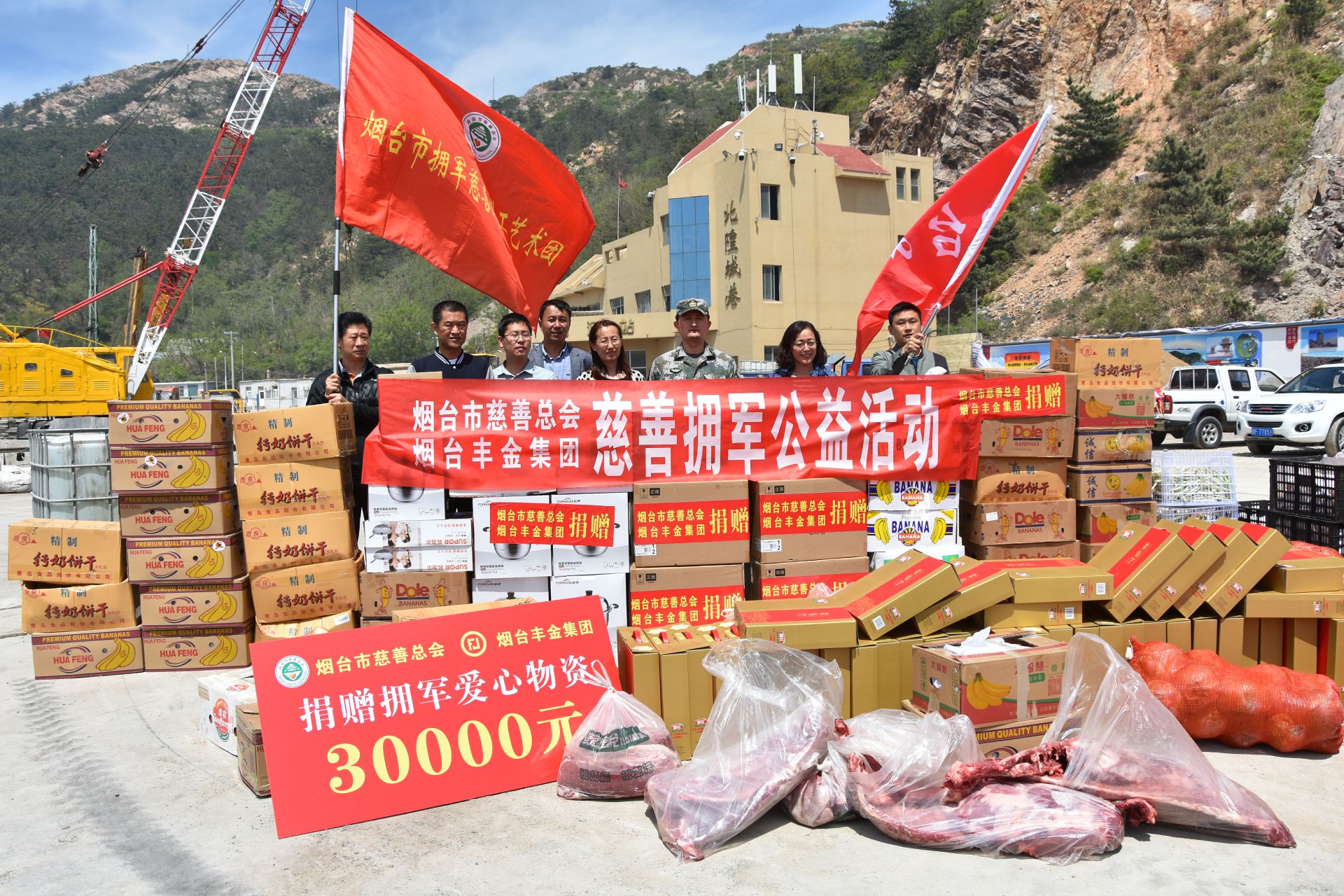 北隍城岛是山东最北端的海岛,与陆地通船单程就需要7个小时,且经常由于天气原因等停航,物资不能及时送到,岛上物资匮乏,条件艰苦,战士们经常要像上甘岭一样节约用水,恶劣天气有时长达20多天。驻岛官兵发扬以“海岛为家,艰苦为荣,祖国为重,奉献为本”的精神,为国家和海岛做出了巨大贡献。按照关于加强基层建设系列重要指示精神,市退役军人事务局组织在全市开展“拥军到一线 走进小散远”活动,市慈善总会积极响应,丰金集团带头行动,走进边防一线,融洽军政军民关系,增进军民感情与友谊。