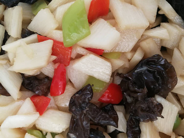 晚餐:米饭 土豆炖鸡块 干煸花菜 烧冬瓜 马蹄银耳汤 水果(香蕉)