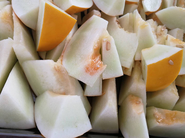晚餐:发面饼 玉米粒超鸡米花 豆腐皮炒菜心 烧冬瓜 丝瓜金针菇汤 水果(伊丽莎白瓜)
