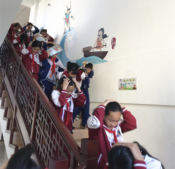 此次演练受到了学校领导的高度重视,活动中各岗位人员尽职尽责,师生疏散有序、动作迅速,整个过程组织严密。随着警报声响起,各班主任沉着镇定,立即指挥学生找到坚固的隐体避险。当“警报解除”的广播响起后,在老师的组织引导下,所有学生按照平时演练方案设定的逃生路线,迅速而有序地从教学楼撤离到学校操场。整个演练过程老师和同学们临危不乱,组织有序,逃生时没有发生拥挤、踩踏和碰伤学生的事故。