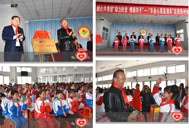4月24日,烟台共青团“助力扶贫 情暖学子”——“丰金心愿直通车”走进莱州市驿道镇。本期活动向4所中小学校发放包括助学金、保温杯、图书等,善款物资共计7万余元,关爱山区少年儿童健康成长。