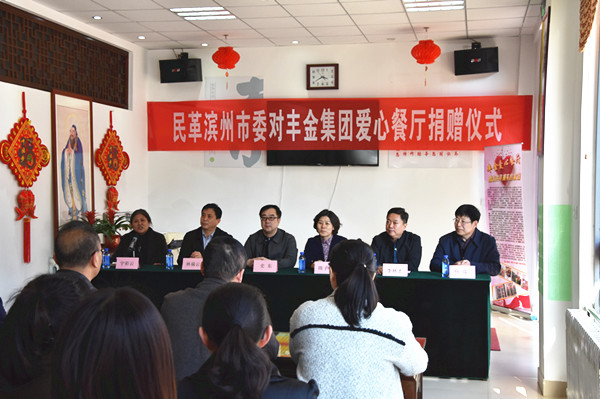 4月8日,丰金爱心餐厅迎来一件喜事——滨州市政协副主席、民革滨州市委主委史东,副主委、滨州市人大常委宁彩云,民革滨州市委委员、滨州医学院支部主委杨成一行对丰金集团爱心餐厅捐赠仪式在这里隆重举行。参加活动的还有民革烟台市委主委隋子林,牟平区委常委、统战部部长林福云,丰金集团董事长李林才。民革滨州市委带着深深的爱,浓浓的关怀对丰金爱心餐厅捐赠了2000斤大米。集团董事长李林才对各位嘉宾的到来及他们的慈善义举表示热烈的欢迎和衷心的感谢。