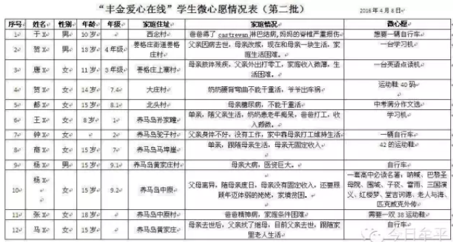 “丰金爱心在线”第二批学子心愿等你认领
