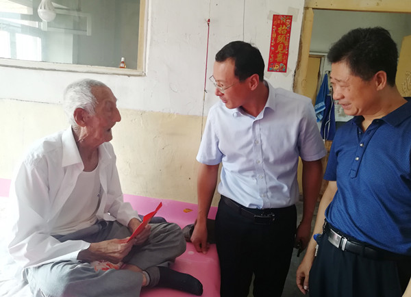 8月2日,志愿者继续出发,看望104岁的伤残老兵于星团。1944年入党,1945年入伍,参军4年多,参与攻打临朐、昌邑、孟良崮等近百次战斗……这无不书写着于星团老人的峥嵘岁月,让我们对这位现年104岁的老兵肃然起敬。老人身子骨还算硬朗,只是听力下降有些严重。志愿者详细了解老人的生活情况,并叮嘱他最近天气炎热,要保重身体。老人深受感动,对党和政府、爱心企业的关心表示感谢。
