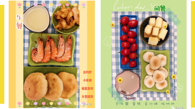 早餐:扬州炒饭、五香蛋、奶香粥、彩蔬豆皮