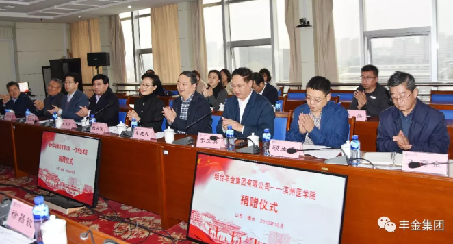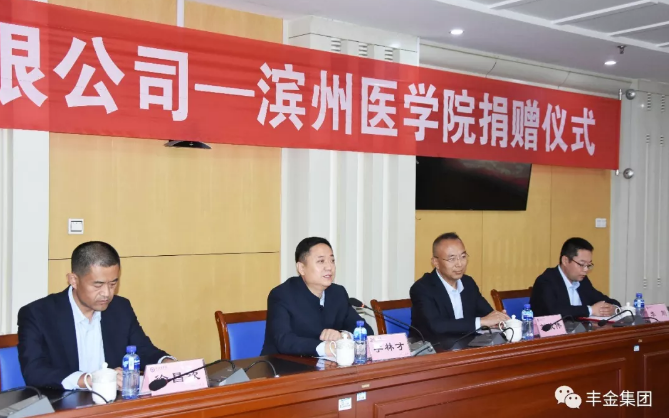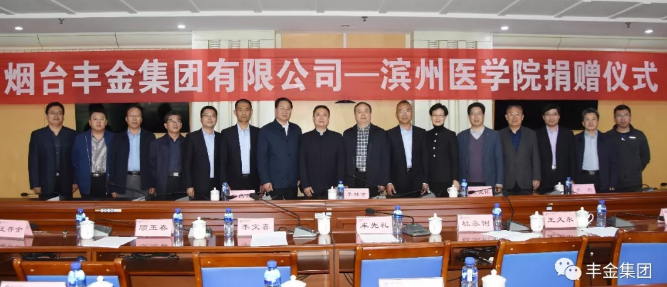 活动现场,丰金集团向滨州医学院捐赠100万元教育基金助力该校发展建设,人才培养。