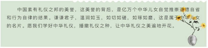 “不学礼,无以立。”简短的六个字却浓缩了一个重要信息——礼仪文化在中华传统文化宝库中的作用,它是中华文化的特色,是做人做事的根本法则,更是一抹亮丽的时代色彩。传统文化中的“礼”,是社会的经纬,大到国家安邦,小到行为规范,都值得我们认真钻研,仔细琢磨。